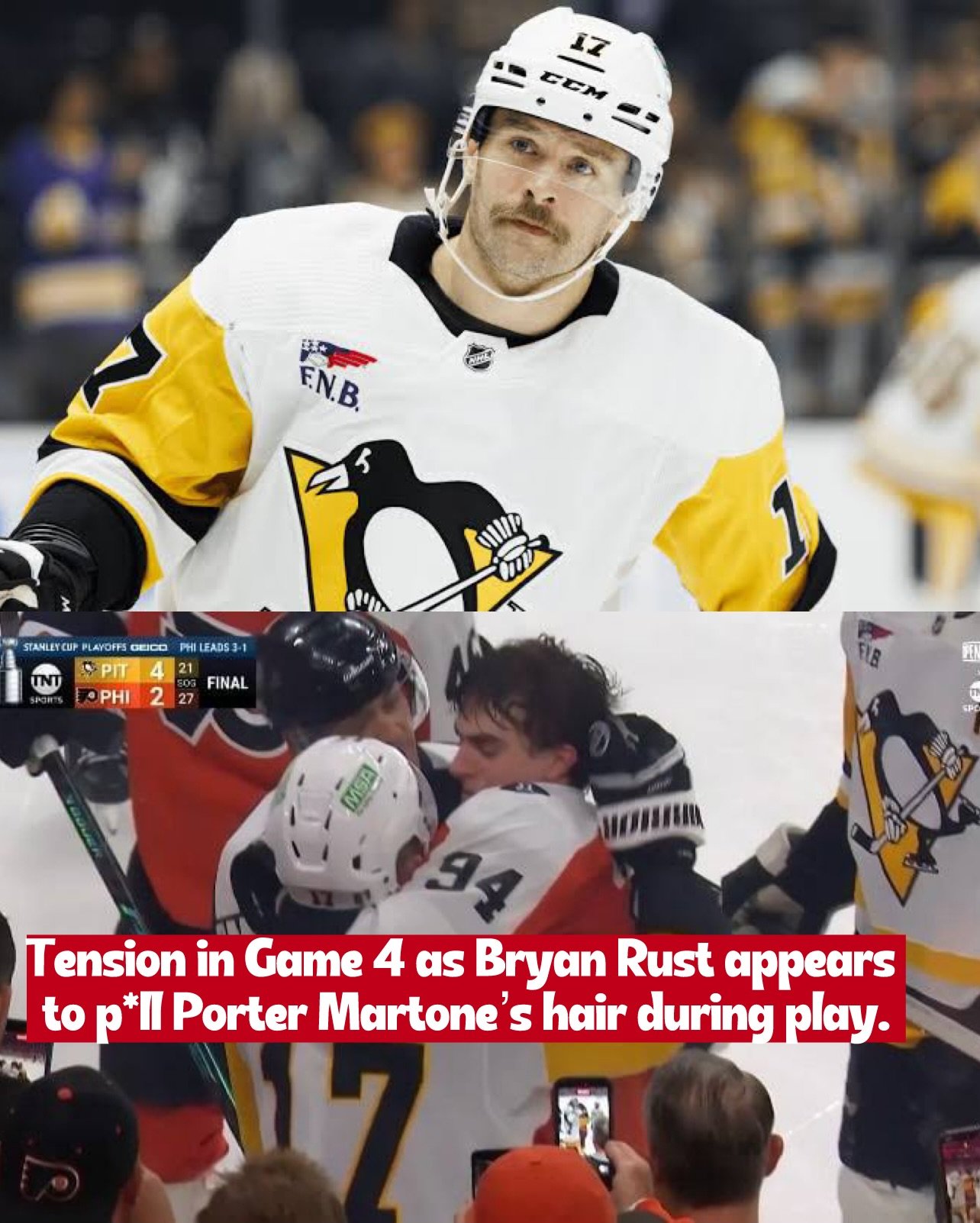 Bryan Rust draws controversy in Game 4 for an alleged hair-pulling incident involving Porter Martone