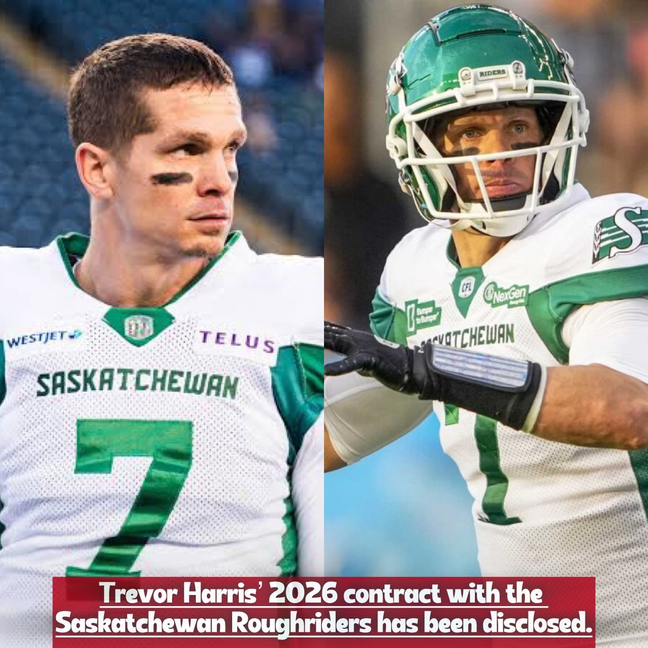 Canadian football quarterback Trevor Harris contract details for 2026 CFL season with Saskatchewan Roughriders has been revealed