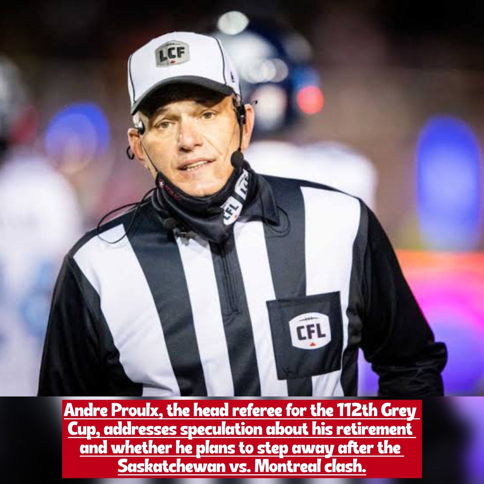 Head referee Andre Proulx gives his take on the retirement rumors and whether he will retire after officiating the Grey Cup between Saskatchewan and Montreal - sportnewstrends