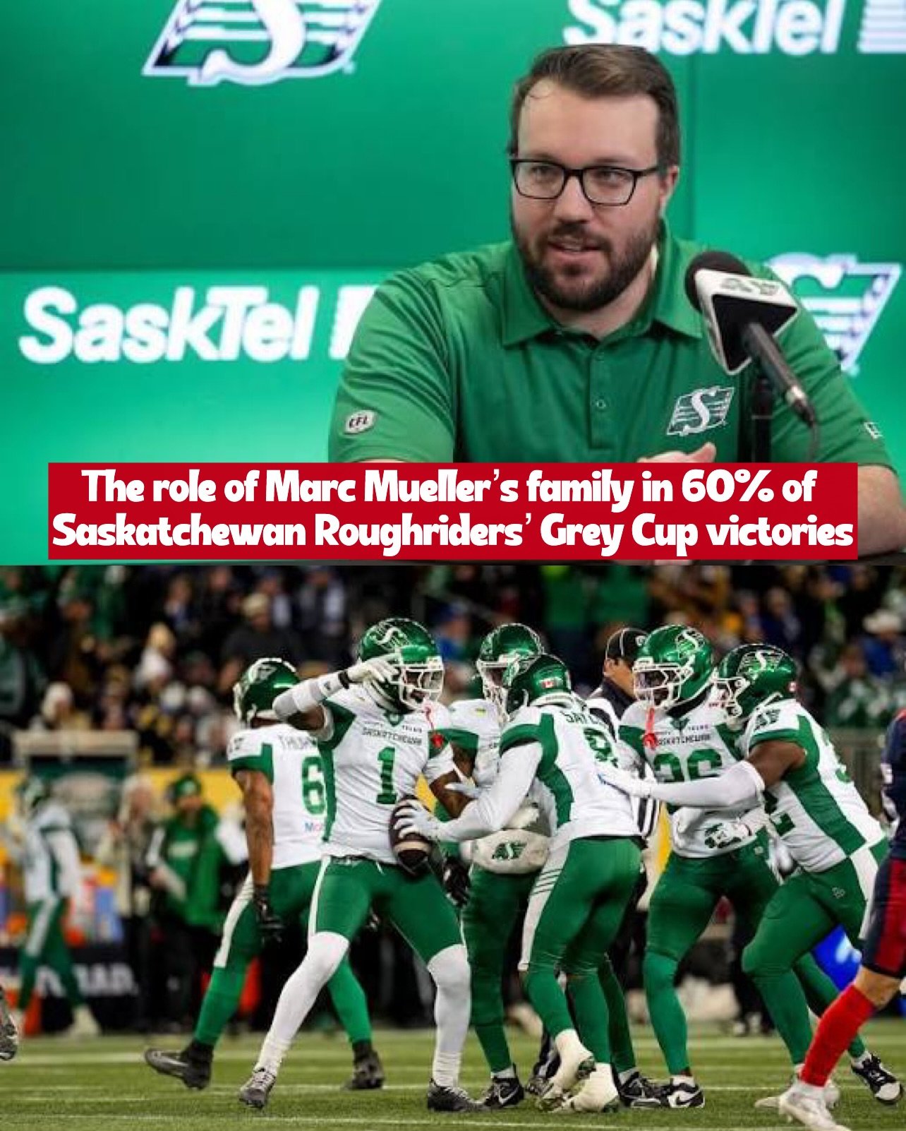 Saskatchewan has lifted the Grey Cup just five times in its 115-year history, and with the 25-17 win over Montreal in Winnipeg, a member of Mueller’s family has been involved in 60 percent of those championships.