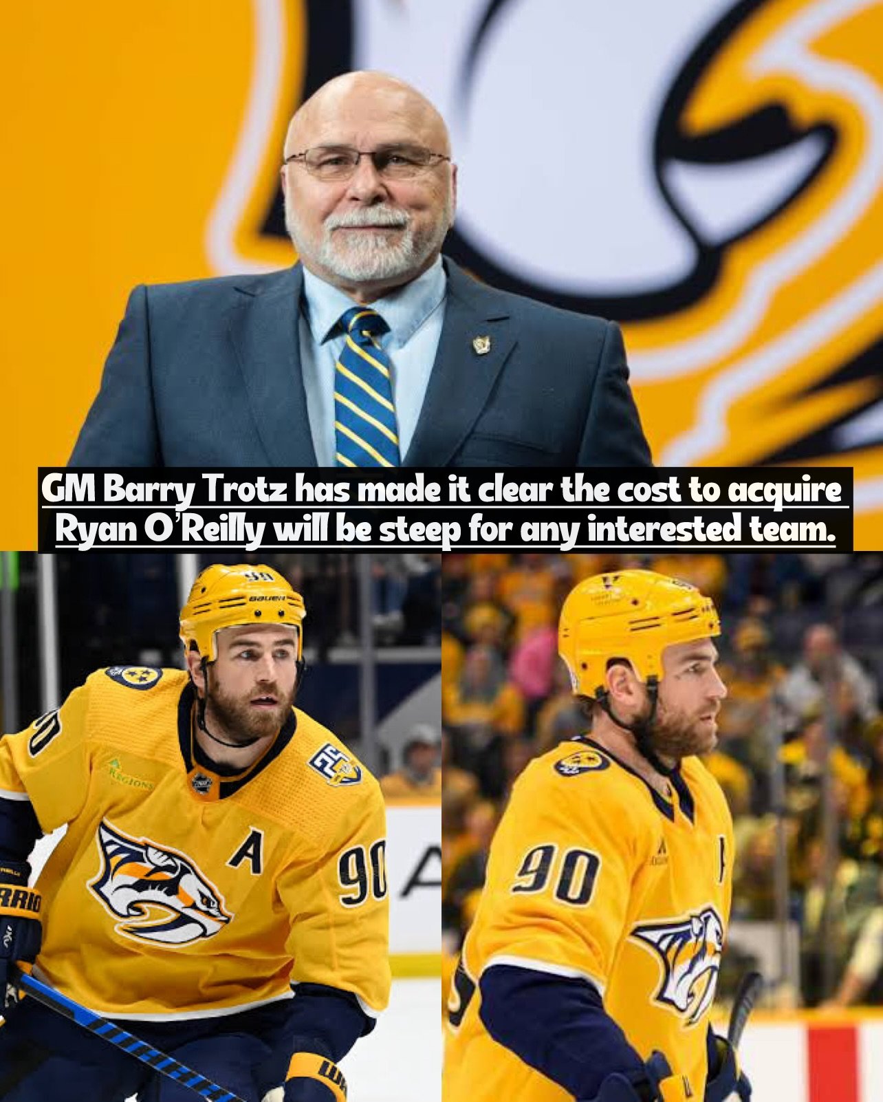 Nashville Predators GM Barry Trotz is demanding a hefty return for veteran centre Ryan O’Reilly