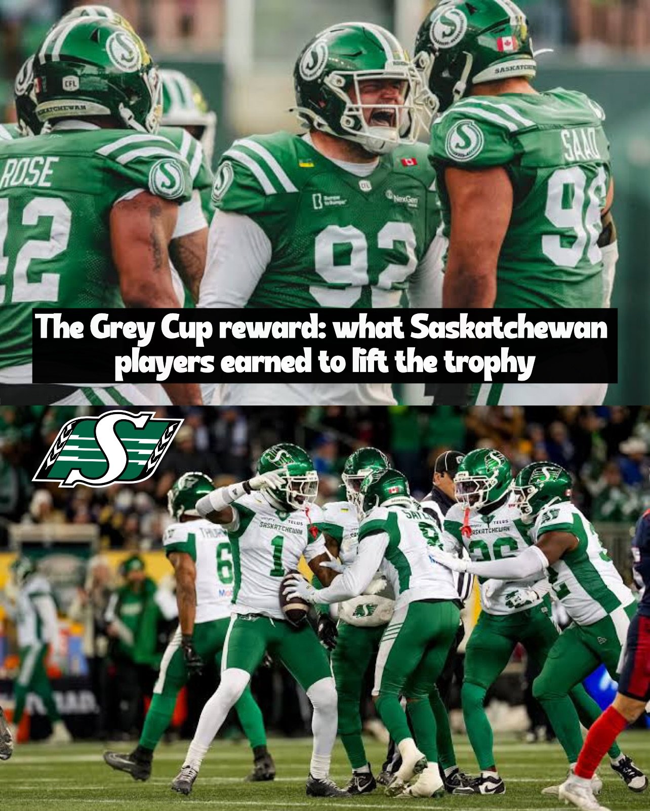Revealed: What every Saskatchewan Roughriders player earned for winning the Grey Cup