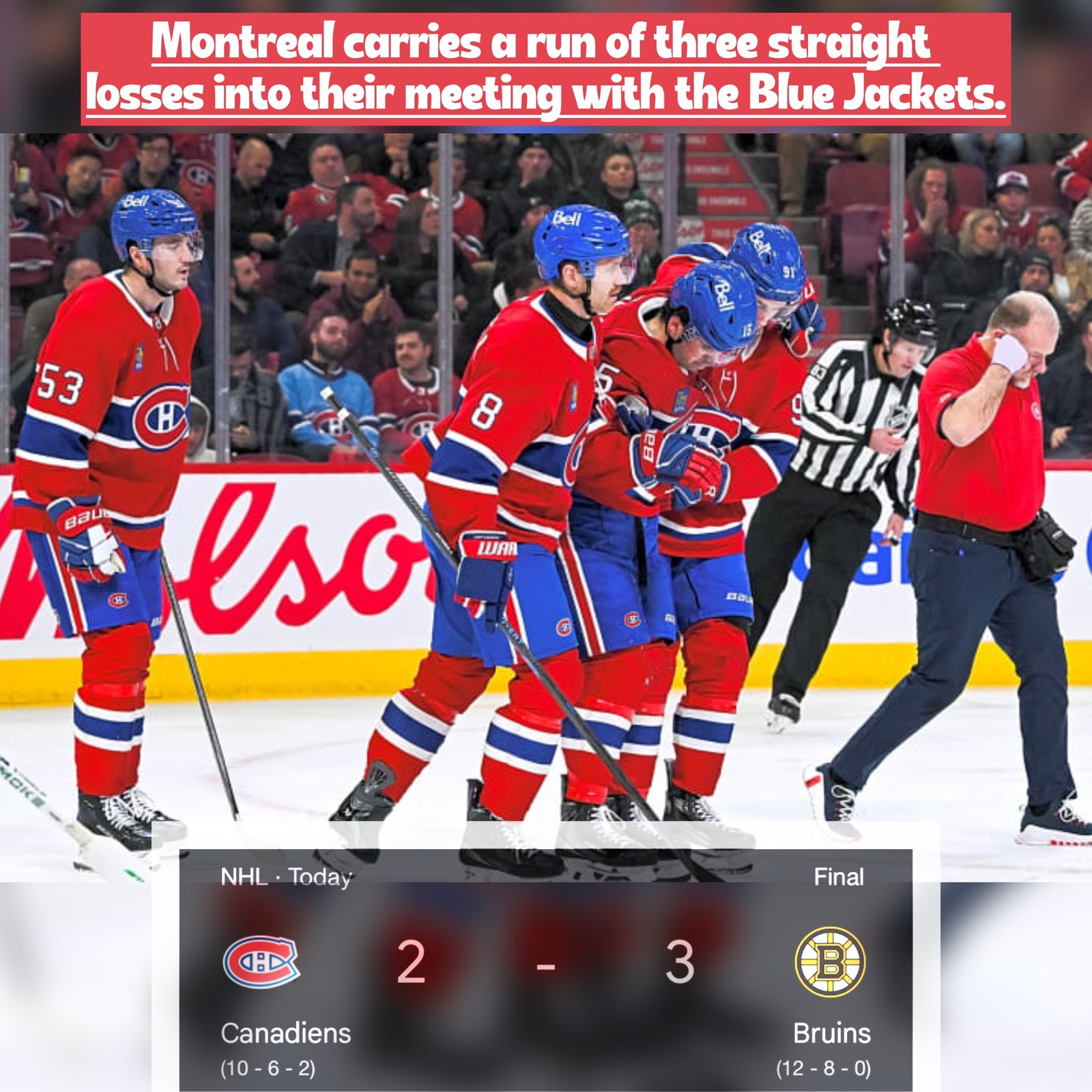 The Canadiens enter their matchup with the Blue Jackets riding a three-game losing skid