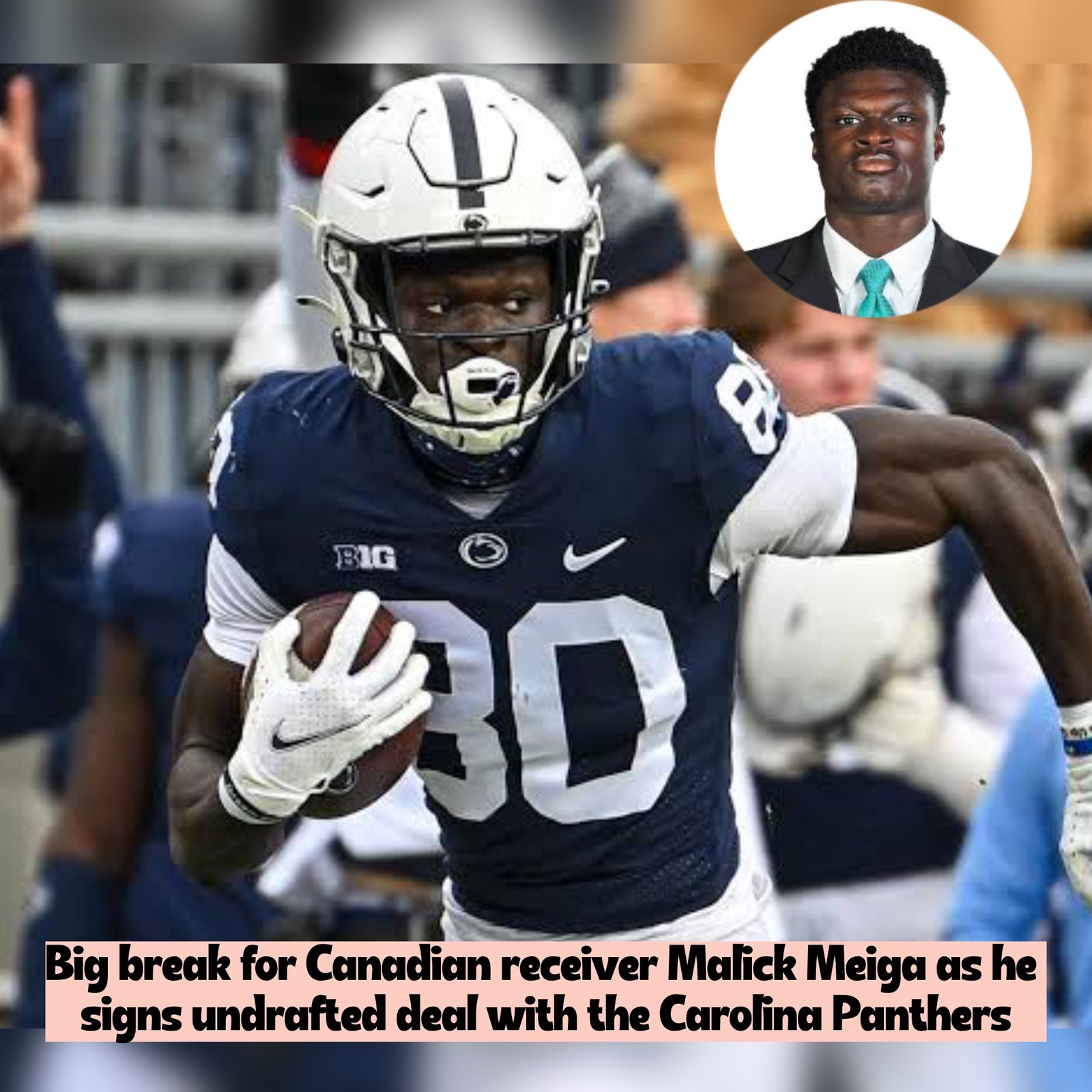 Canadian receiver Malick Meiga has officially signed with the Carolina Panthers as an undrafted free agent following the conclusion of the 2026 NFL Draft, according to his agent Nathaniel “Nate” Thomas.