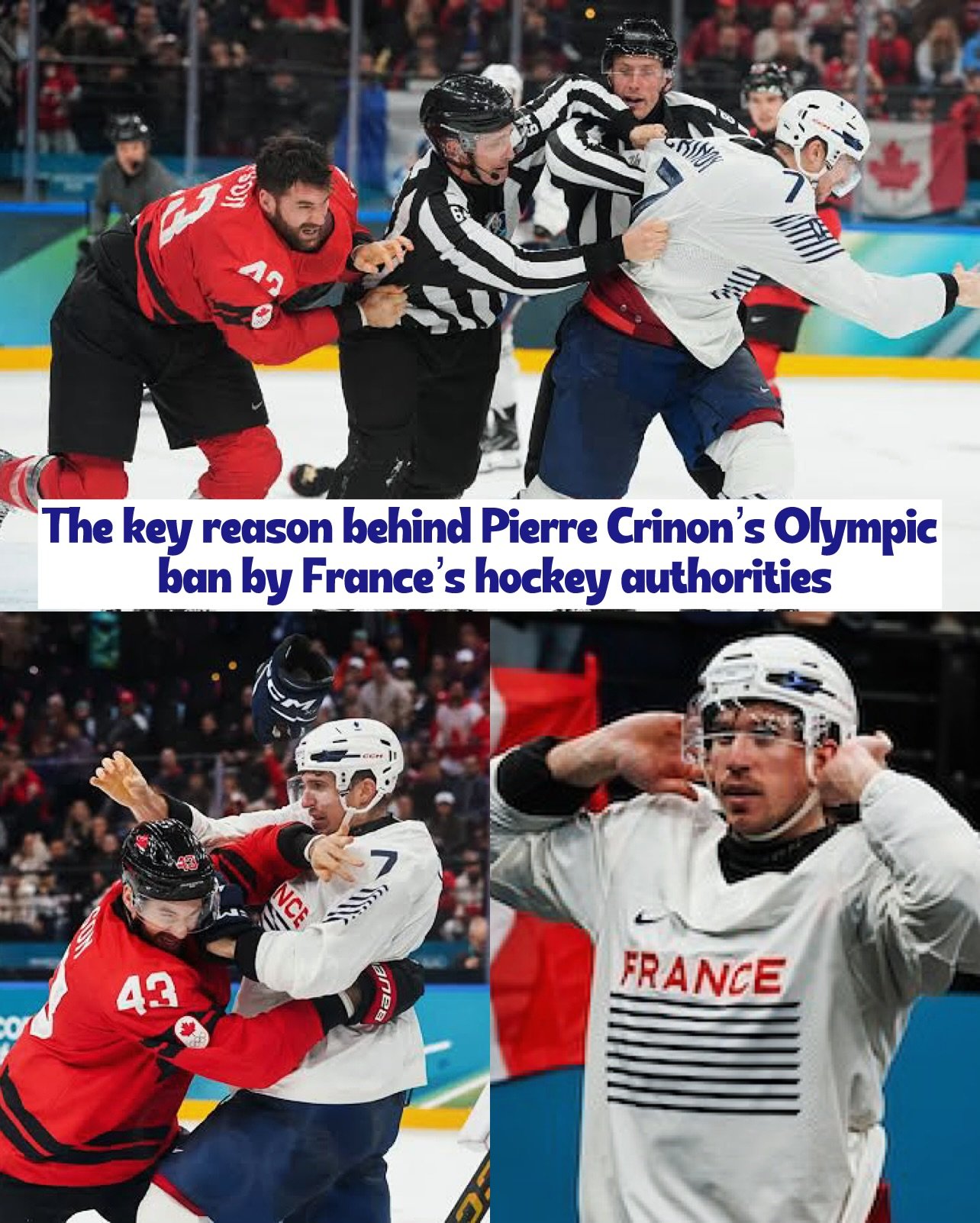 Why Pierre Crinon was banned for the remainder of the 2026 Winter Olympics by the French Hockey Federation